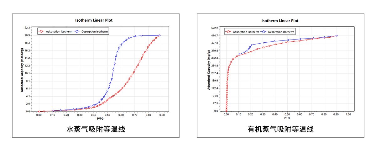 ◆ 蒸气吸附等温线测试,如H2O、有机蒸气等;